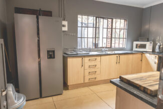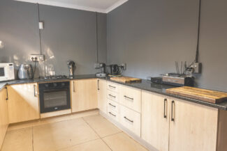 - Fully equipped kitchen with gas stove & oven, microwave, kettle & fridge